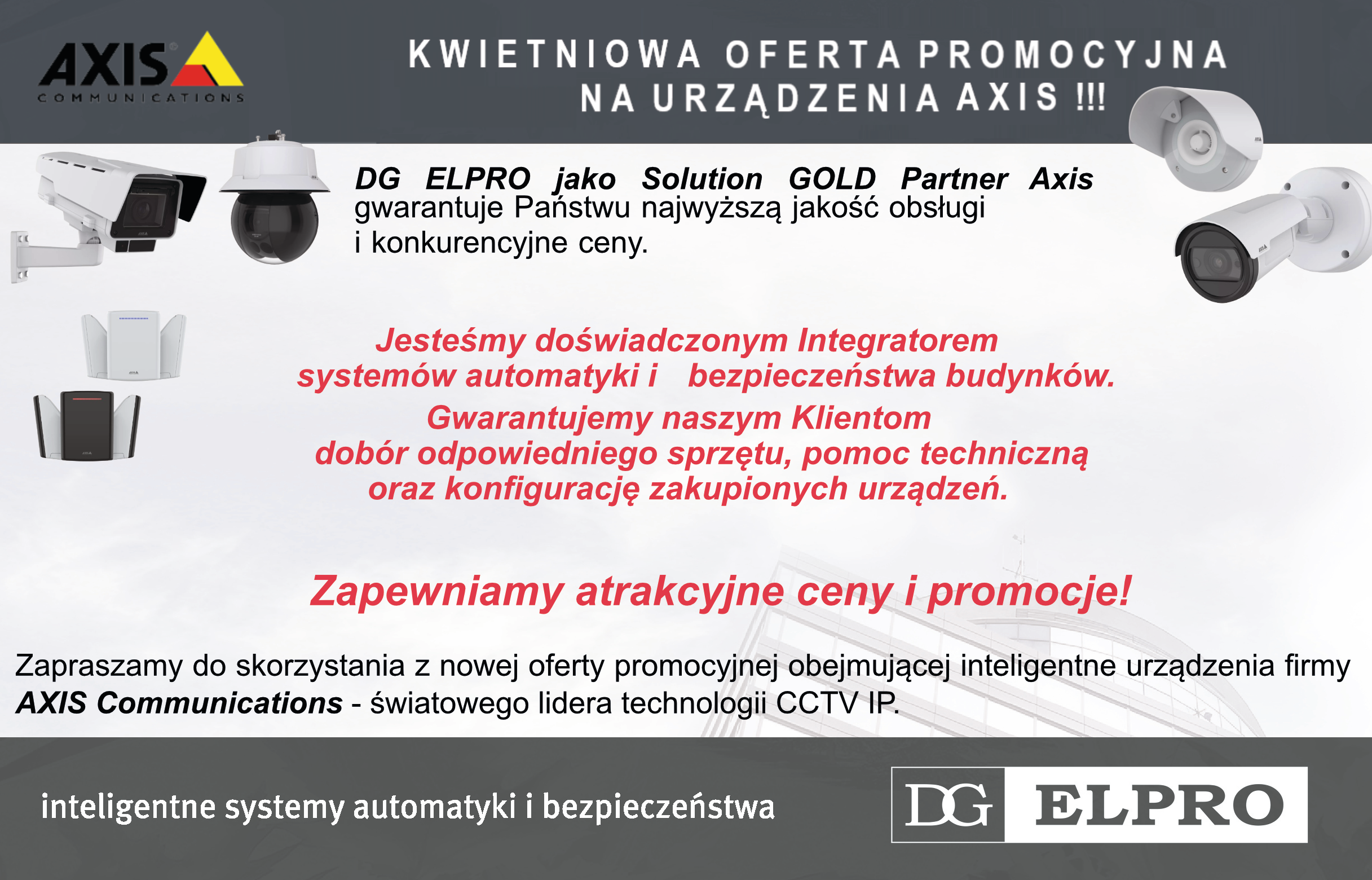 Zapraszamy do skorzystania z nowej oferty promocyjnej obejmującej inteligentne urządzenia firmy AXIS Communications - światowego lidera technologii CCTV IP.