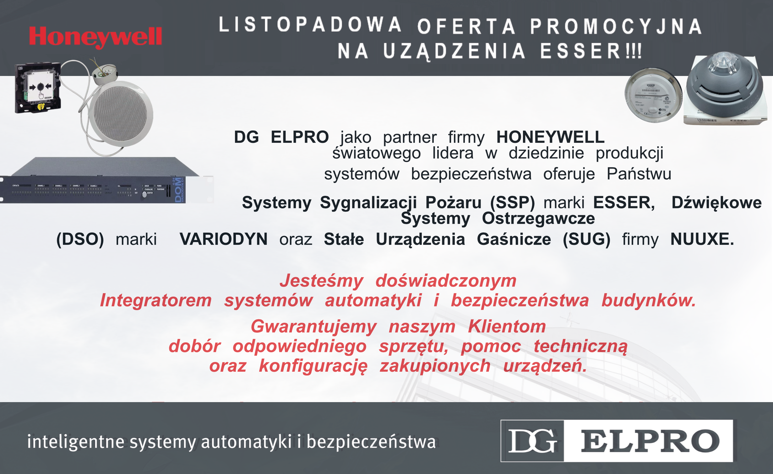 Zapraszamy do skorzystania z listopadowej oferty promocyjnej obejmującej urządzenia systemów bezpieczeństwa marki ESSER.