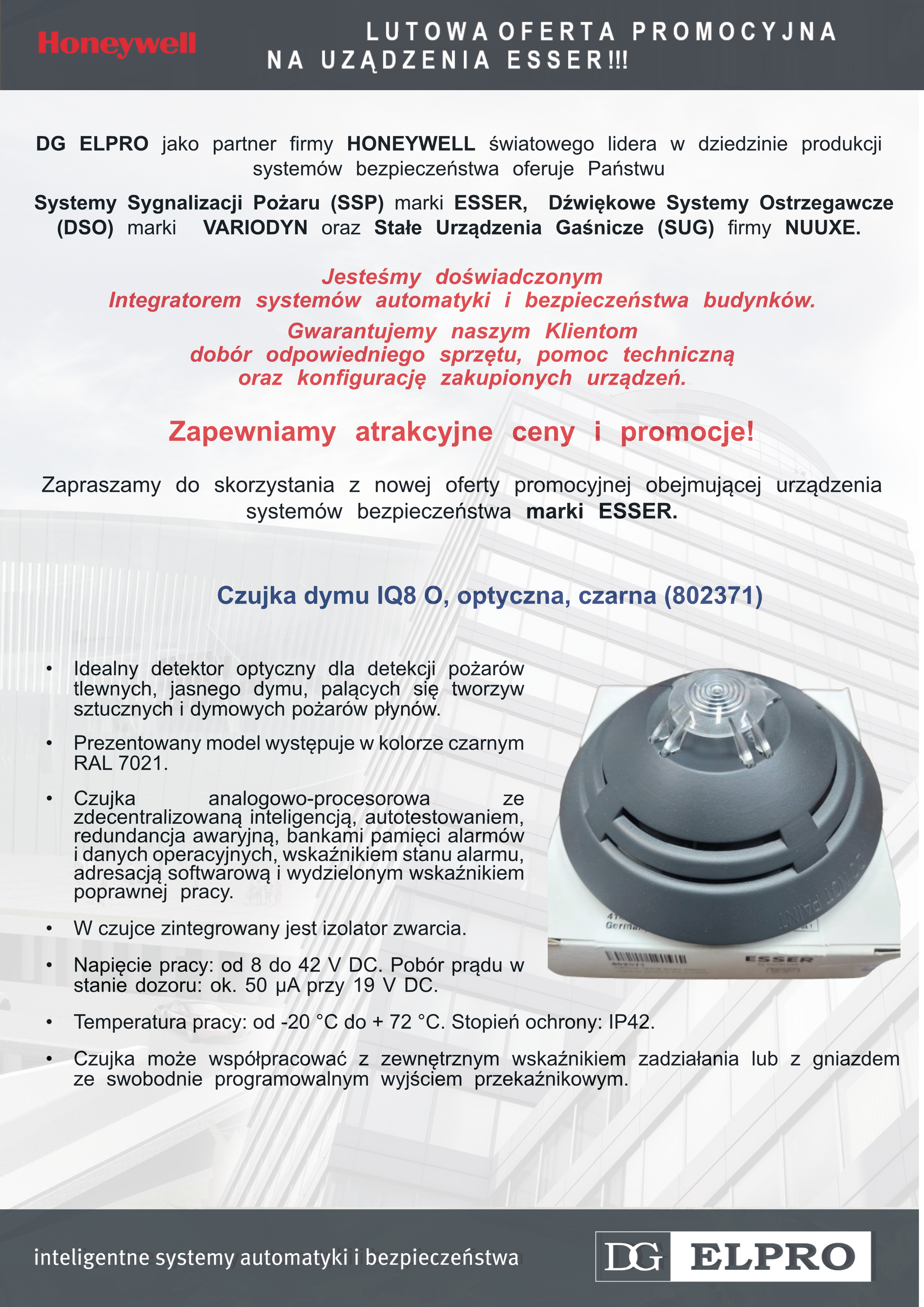 DG ELPRO jako partner firmy HONEYWELL światowego lidera w dziedzinie produkcji systemów bezpieczeństwa oferuje Państwu Systemy Sygnalizacji Pożaru (SSP) marki ESSER, Dźwiękowe Systemy Ostrzegawcze (DSO) marki VARIODYN oraz Stałe Urządzenia Gaśnicze (SUG) firmy NUUXE.