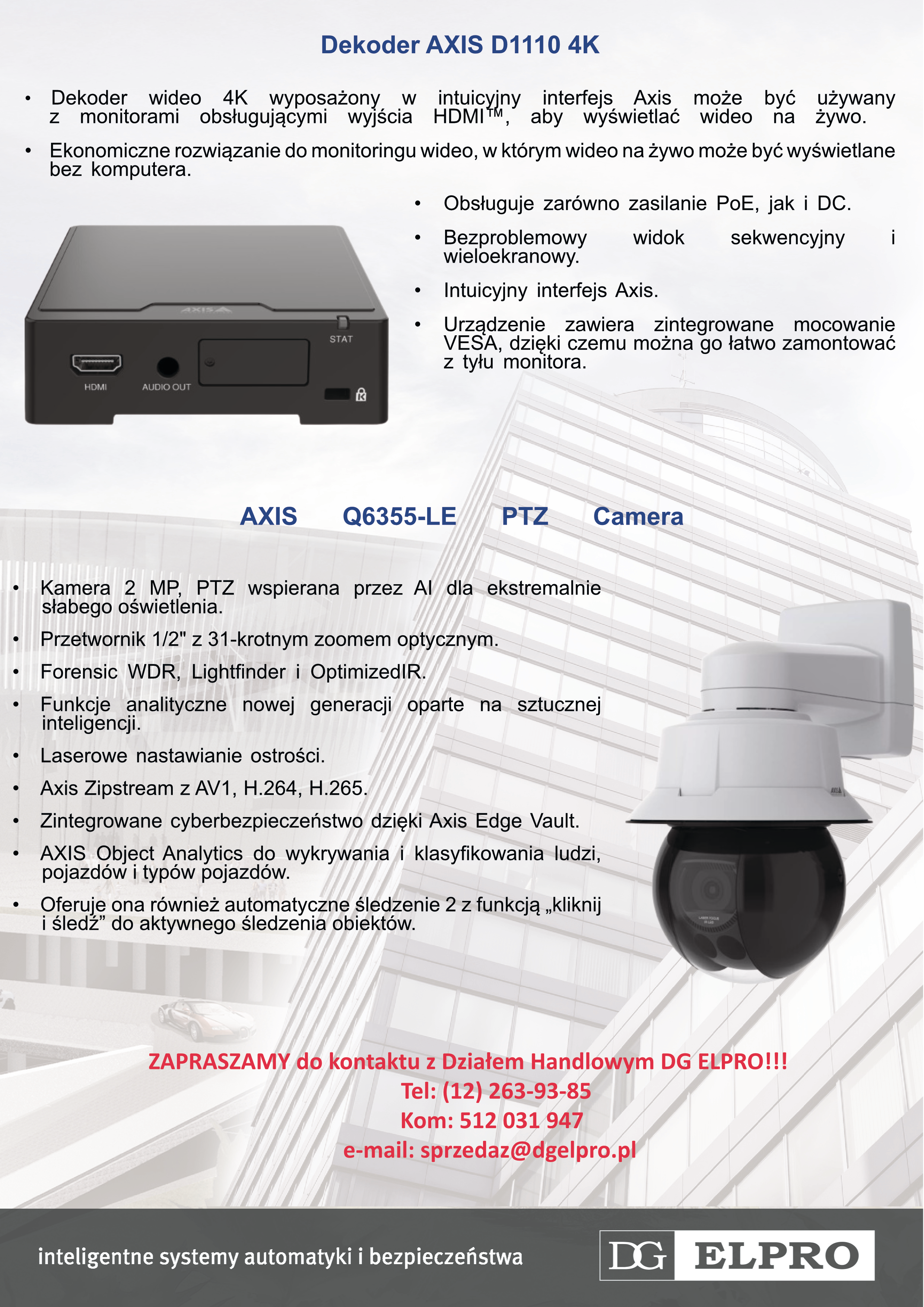 ZAPRASZAMY do kontaktu z Działem Handlowym DG ELPRO!!!